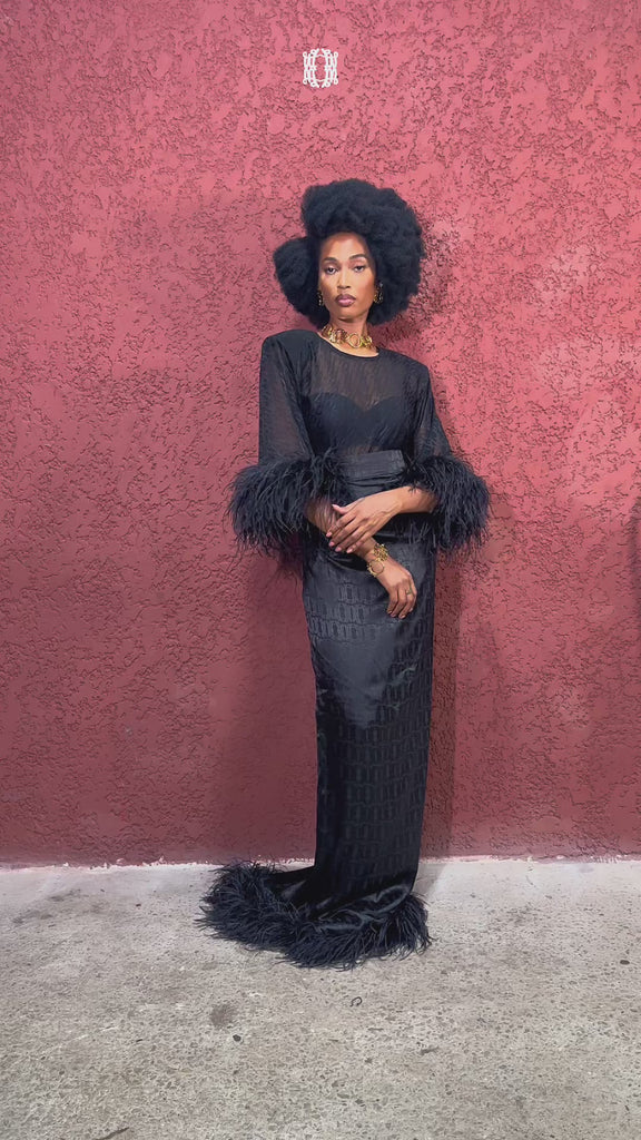 Elevate your style with this exquisite Asa Set. The Buba is crafted from WF mesh brocade fabric and adorned with luxurious ostrich feathers on the sleeves, adding a dramatic, couture-inspired touch. It pairs beautifully with a high-waisted, floor-length Iro in WF silk satin, creating a flowing silhouette that seamlessly blends traditional elegance with modern sophistication. Perfect for celebrations and statement-making occasions.