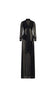 A luxurious high-neck dress crafted from fine mesh, designed to exude effortless sophistication. Sculpted wrap detailing accentuates the bust and waist, while the silhouette releases softly below the hip, creating a fluid sweep with every step. A striking expression of power, elegance, and timeless presence.